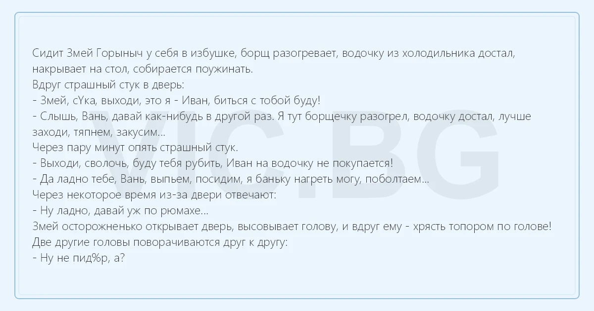 - Змей, сYкa, выходи, это я - Ивaн, биться с тобой буду!