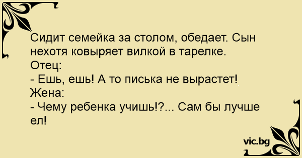 - Ешь, ешь! А то писька не вырастет!
