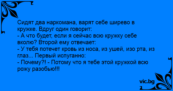- А что будет, если я сейчас всю кружку себе вколю? Второй ему отвечает:
