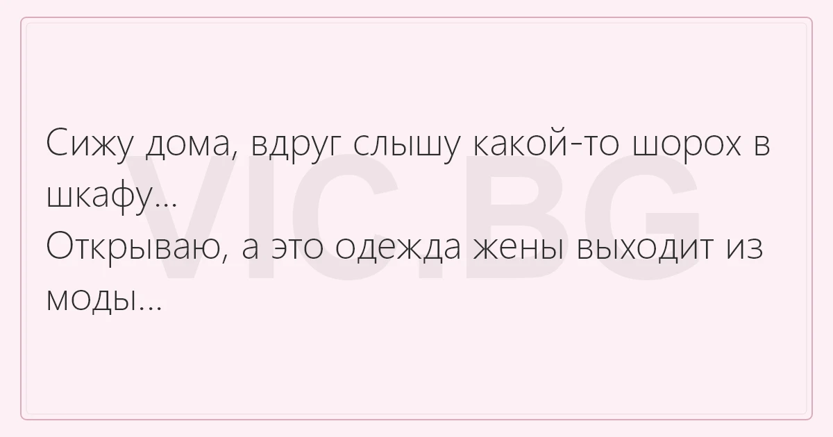 Сижу дома, вдруг слышу какой-то шорох в шкафу...Открываю, а это одежда жены выходит из моды... 11 0 0 Анекдоты