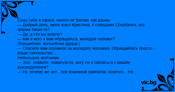 — Добрый день, меня зовут Кристина, я сотрудник Сбербанка, это фирма такая-то?