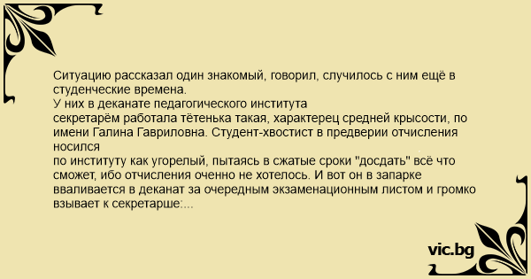 Студент, кстати, институт закончил нормально, но глаза секретарши до сих