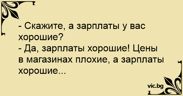 - Да, зарплаты хорошие! Цены в магазинах плохие, а зарплаты хорошие...