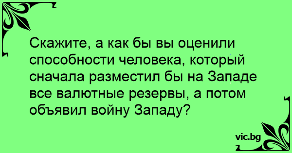 Скажите, а как бы вы оценили способности человека, который сначала разместил бы на Западе все валютные резервы, а потом объявил войну Западу?