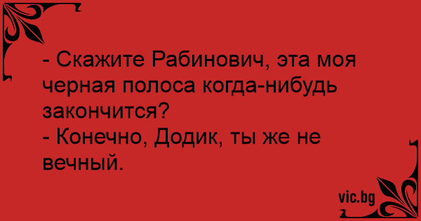 - Скажите Рабинович, эта моя черная полоса когда-нибудь закончится?