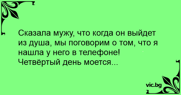 Сказала мужу, что когда он выйдет из душа, мы поговорим о том, что я нашла у него в телефоне! Четвёртый день моется...