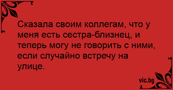 Сказала своим коллегам, что у меня есть сестра-близнец, и теперь могу не говорить с ними, если случайно встречу на улице.