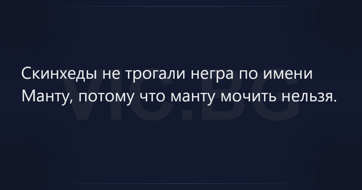 Скинхеды не трогали негра по имени Манту, потому что манту мочить нельзя.