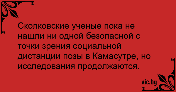 Сколковские ученые пока не нашли ни одной безопасной с точки зрения социальной дистанции позы в Камасутре, но исследования продолжаются.