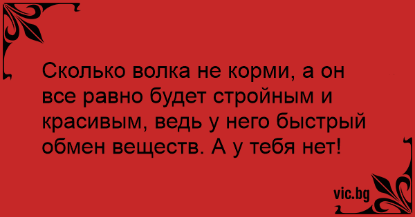 Сколько волка не корми, а он все равно будет стройным и красивым, ведь у него быстрый обмен веществ. А у тебя нет!
