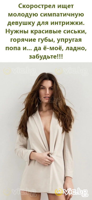 Свршувам пребрзо – барам млада згодна девојка за авантура. Мора да има добри цици, жешки усни, затегнато дупe и... еј, ма ајде, нема везе веќе!!!