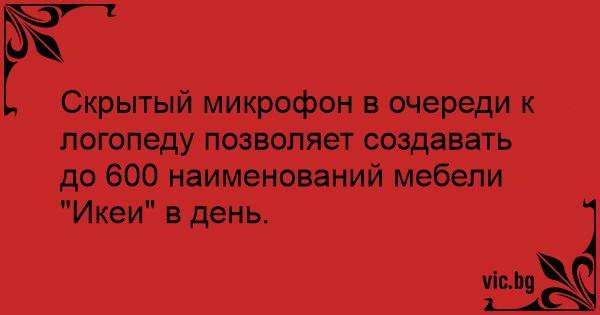 Скрытый микрофон в очереди к логопеду позволяет создавать до 600 наименований мебели "Икеи" в день.