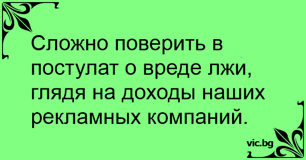 Сложно поверить в постулат о вреде лжи, глядя на доходы наших рекламных компаний.