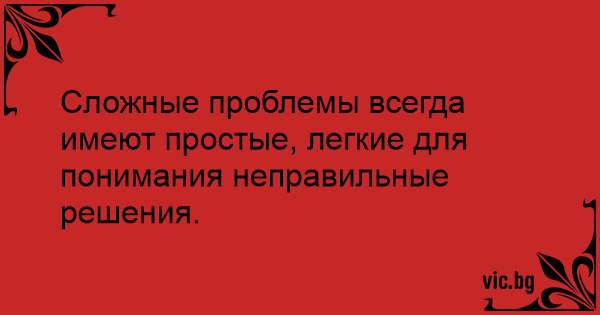 Сложные проблемы всегда имеют простые, легкие для понимания неправильные решения.