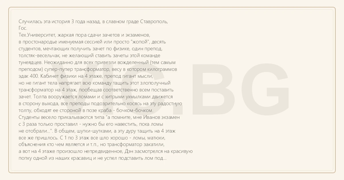 определений: "Трансформатор, весом 400Кг падает по ступенькам