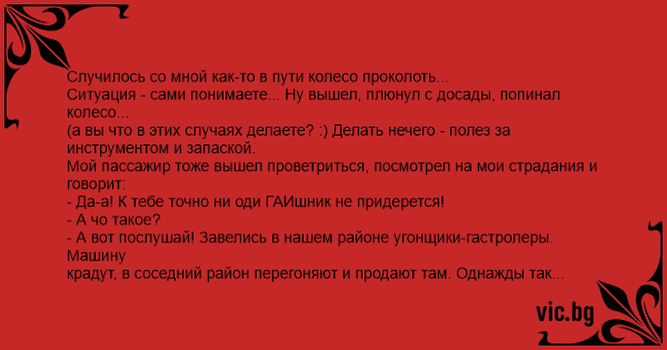 Случилось со мной как-то в пути колесо проколоть...