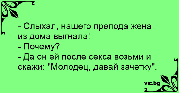 - Да он ей после cekca возьми и скажи: "Молодец, давай зачетку".