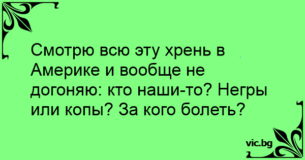 Смотрю всю эту хрень в Америке и вообще не догоняю: кто наши-то? Негры или копы? За кого болеть?