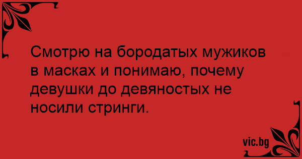 Смотрю на бородатых мужиков в масках и понимаю, почему девушки до девяностых не носили стринги.