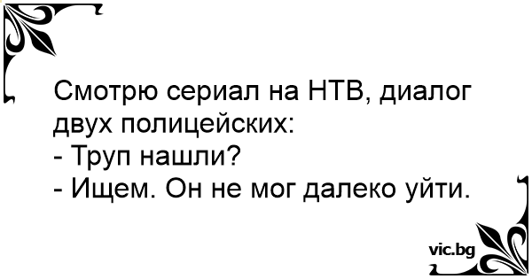 Смотрю сериал на НТВ, диалог двух полицейских: