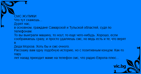 лет назад приходит маме на телефон смс, что радио Европа плюс