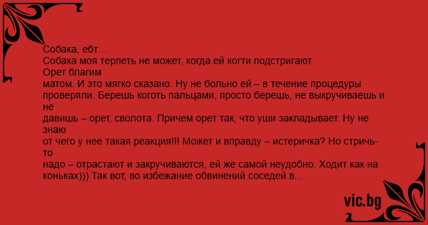 Собака, ебт… Собака моя терпеть не может, когда ей когти подстригают.