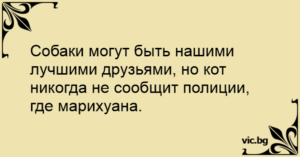 Собаки могут быть нашими лучшими друзьями, но кот никогда не сообщит полиции, где марихуана.