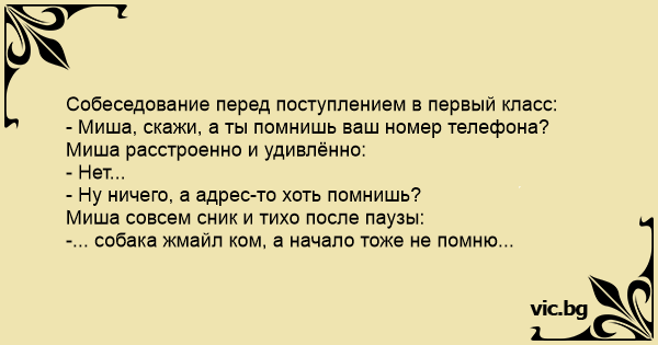 - Миша, скажи, а ты помнишь ваш номер телефона?