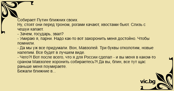 - Чего?! Вот после всего, что я для России сделал - и вы меня в каком-то сраном Мавзолее хоронить собираетесь?! Да вы, блин, все тут щас раньше меня поумираете.