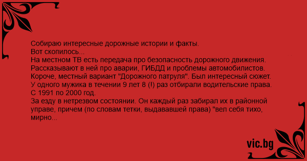 У одного мужика в течении 9 лет 8 (!) раз отбирали водительские права.