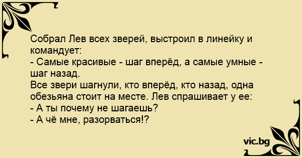 Собрал Лев всех зверей, выстроил в линейку и командует: