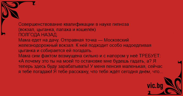 Совершенствование квалификации в науке гипноза (вокзал, цыганка, папаха и кошелёк) ПОЛГОДА НАЗАД.