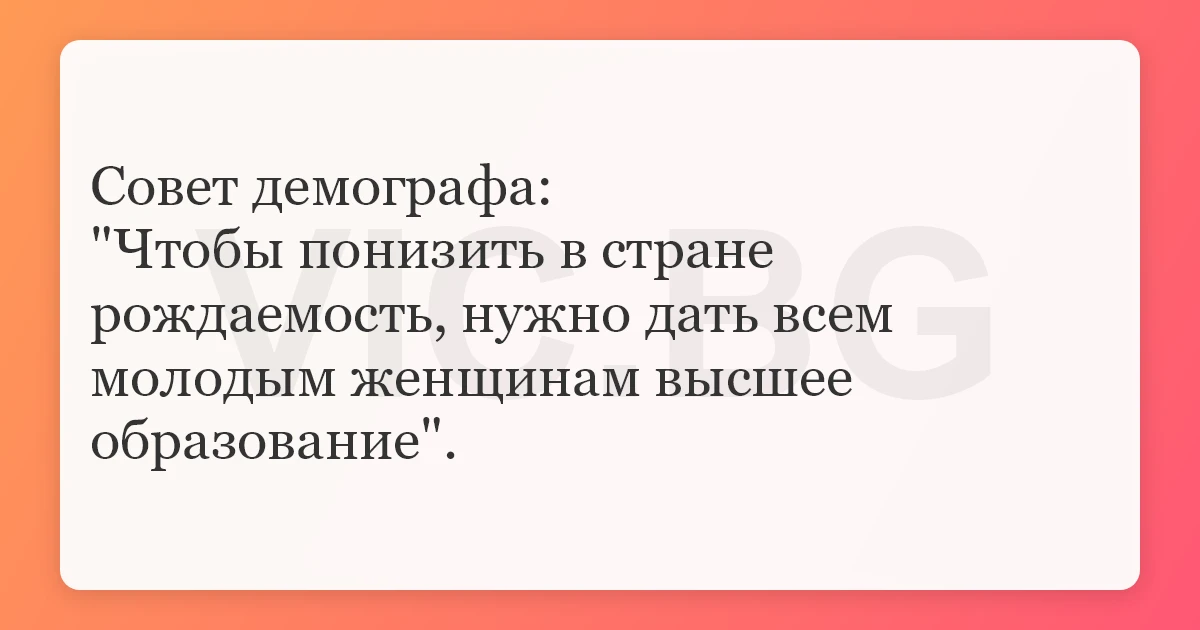 "Чтобы понизить в стране рождаемость, нужно дать всем молодым женщинам высшее образование".