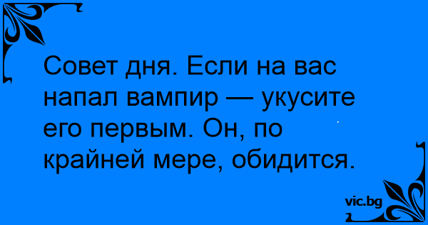 Совет дня. Если на вас напал вампир — укусите его первым. Он, по крайней мере, обидится.