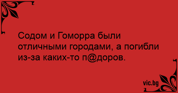 Содом и Гоморра были отличными городами, а погибли из-за каких-то п@доров.