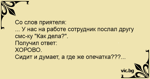 ... У нас на работе сотрудник послал другу смс-ку "Как дела?".