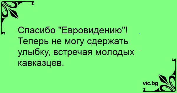 Спасибо "Евровидению"! Теперь не могу сдержать улыбку, встречая молодых кавказцев.