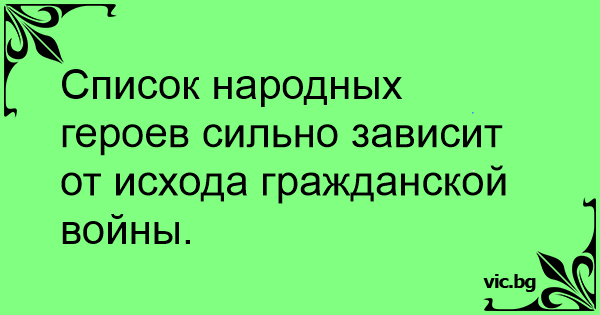 Список народных героев сильно зависит от исхода гражданской войны.