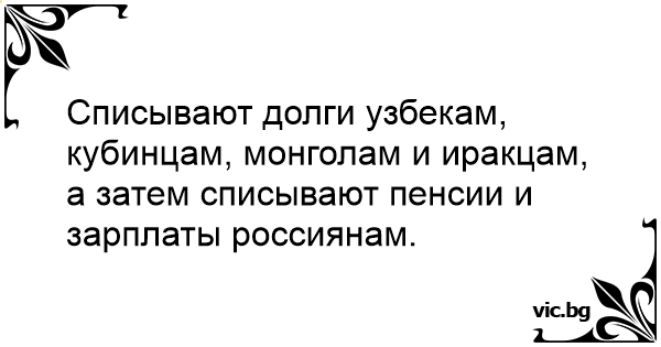 Списывают долги узбекам, кубинцам, монголам и иракцам, а затем списывают пенсии и зарплаты россиянам.