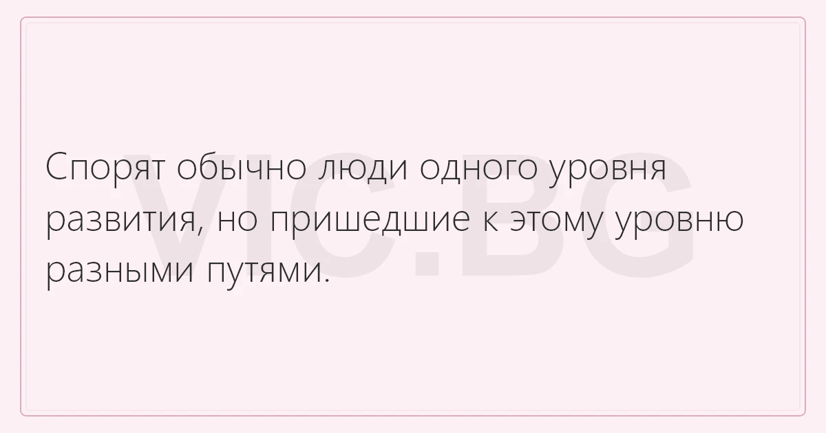 Спорят обычно люди одного уровня развития, но пришедшие к этому уровню разными путями.