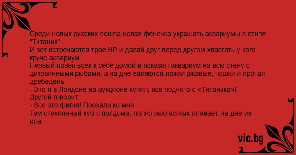 И вот встречаются трое НР и давай друг перед другом хвастать у кого круче аквариум.