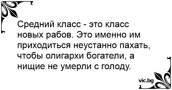 Средний класс - это класс новых рабов. Это именно им приходиться неустанно пахать, чтобы олигархи богатели, а нищие не умерли с голоду.
