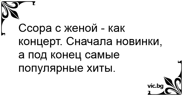Ссора с женой - как концерт. Сначала новинки, а под конец самые популярные хиты.