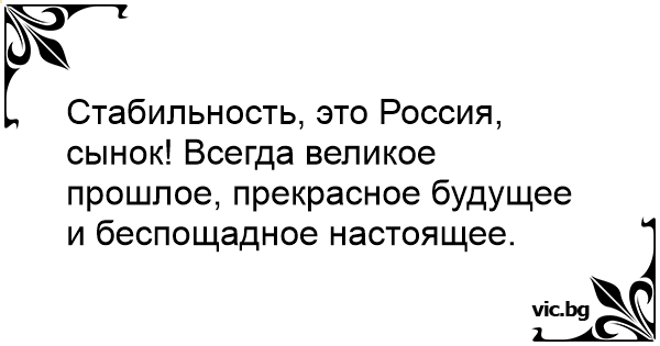 Стабильность, это Россия, сынок! Всегда великое прошлое, прекрасное будущее и беспощадное настоящее.
