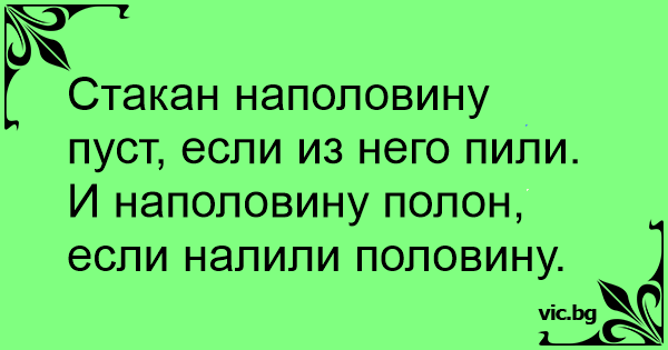 Стакан наполовину пуст, если из него пили. И наполовину полон, если налили половину.
