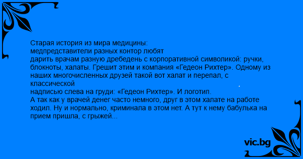 — Ну врач ваш, Гедеон Рихтер. У него на халате его имя написано.