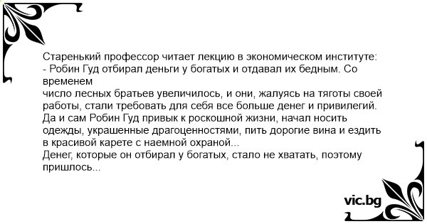 - Робин Гуд отбирал деньги у богатых и отдавал их бедным. Со временем