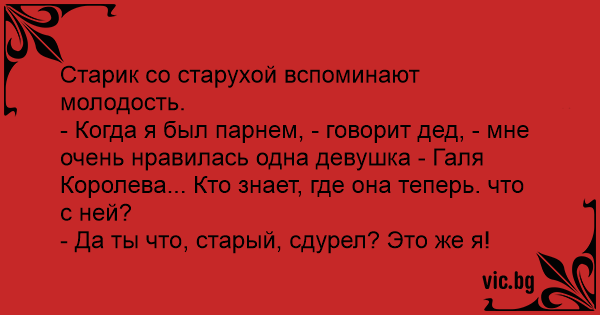 - Когда я был парнем, - говорит дед, - мне очень нравилась одна девушка - Галя Королева... Кто знает, где она теперь. что с ней?