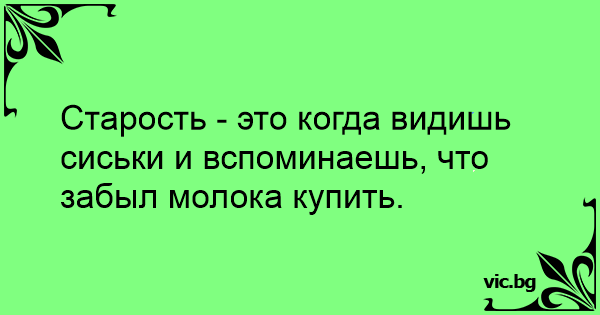 Старость - это когда видишь сиськи и вспоминаешь, что забыл молока купить.