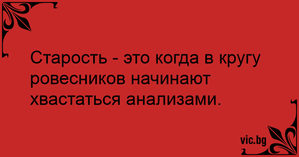 Старость - это когда в кругу ровесников начинают хвастаться анализами.